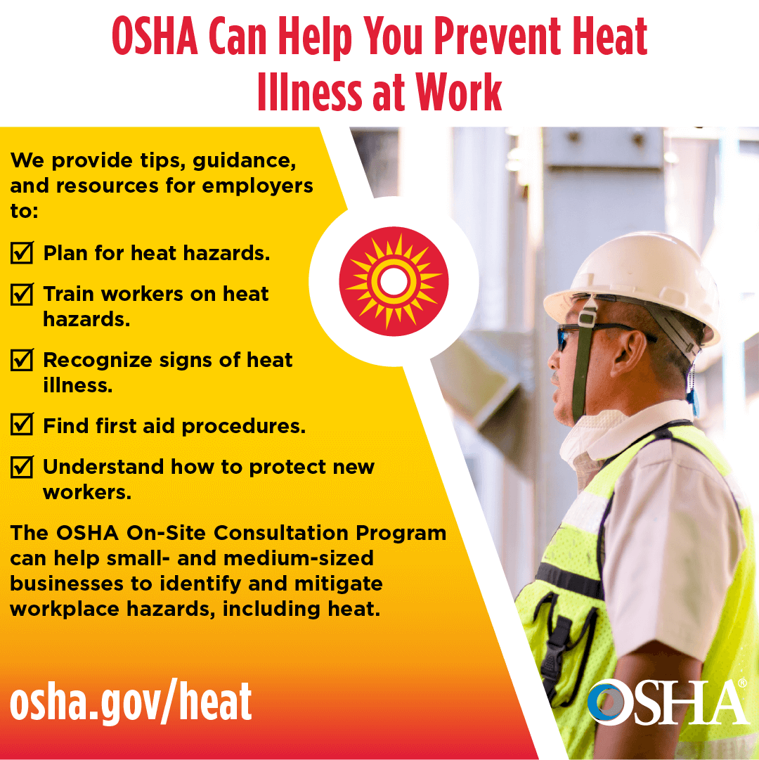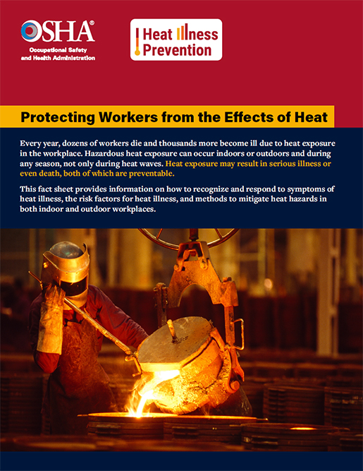 Under the Occupational Safety and Health Act, employers are responsible for providing workplaces free of known safety and health hazards. This includes protecting workers from heat-related hazards. Here are some actions you should take: