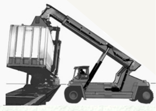 For the following reasons we conclude that reach stackers are powered industrial trucks and therefore fall within this exception. ASME B56.1, 1959, "Safety Code for Powered Industrial Trucks," p. 7, referred to in subparagraph (j)(1), defines a "powered industrial truck" as "a mobile, power-driven truck or tractor, as specifically defined below, used to carry, push, pull, lift, stack or tier material." A reach stacker is a mobile, power-driven truck, which moves loads both vertically and horizontally, used to handle and stack material. Therefore, a reach stacker is a powered industrial truck and thus falls within the subparagraph (j)(1) exception to the certification requirement of 29 CFR 1917.50. Furthermore, manufacturers of reach stackers have classified reach stackers as powered industrial trucks, just as they and OSHA classified top loaders (see Figure 2), which also stack materials, albeit only vertically.